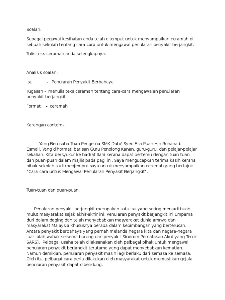 Contoh Karangan Ceramah Penyakit Berjangkit